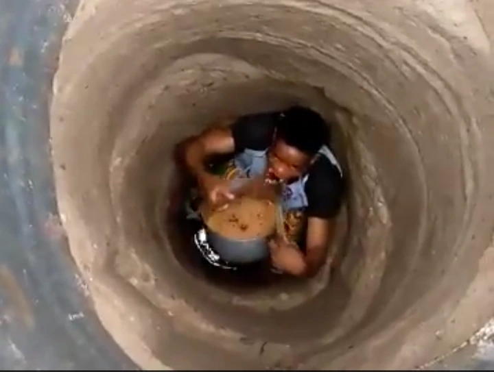 I wonder what DJ Cuppy will think about this one, the young boy is enjoying his own jollof rice inside the well, has to be the winner for me.