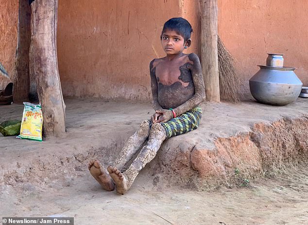 Seven-year-old Rajeshwari, who lives in the Indian state of Chhattisgarh, suffers from an incurable condition called ichthyosis which causes her skin to become scaly.