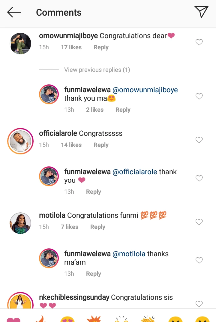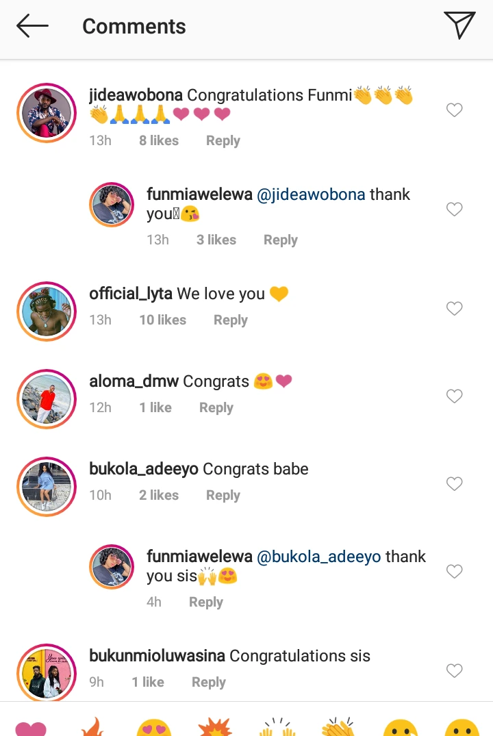Celebrities including Bukunmi Oluwasina, Lyta, Jide Awobona, Bukola Adeeyo, Aloma DMW, Nkechi Blessing, Woli Arole, Wunmi Ajiboye and many more have deem it fit to congratulate the star actress through the comment box