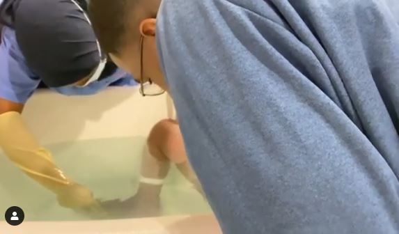 The proud father has shared a heart-melting video of his wife delivering their son through water birth at a hospital.
