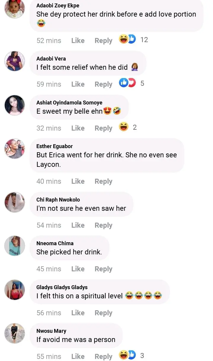 At the party Laycon was seen dancing on his own, and thereafter came Erica from behind him and she proceeded to standing right beside him, and at the moment Laycon noticed that the person beside him was Erica, he was quick to give her space.