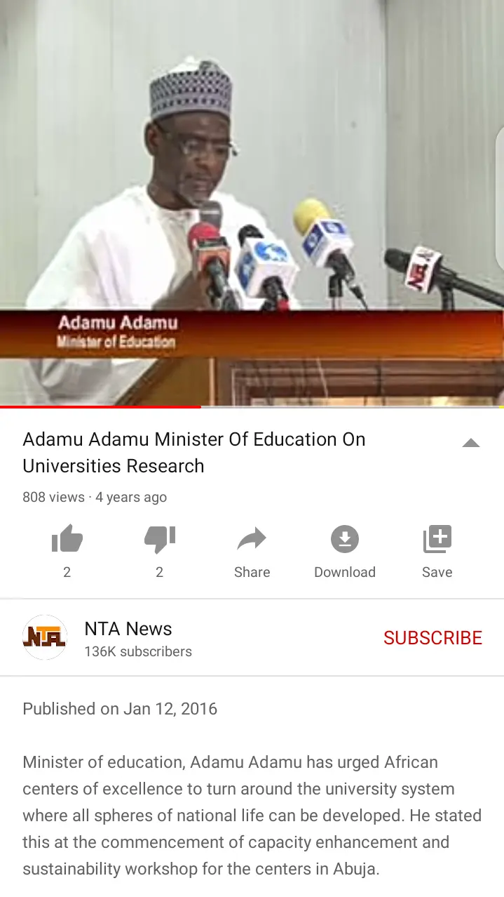 The video was published on 12th of January, 2016, and made available on YouTube, where the Minister was speaking on Universities Research.