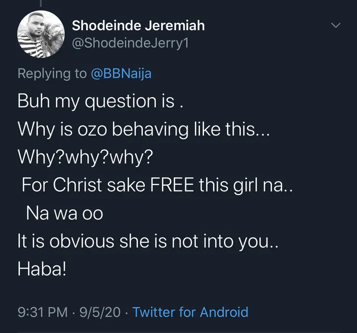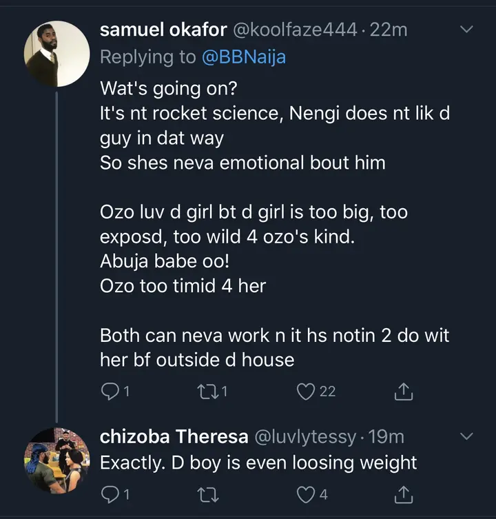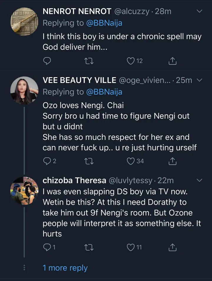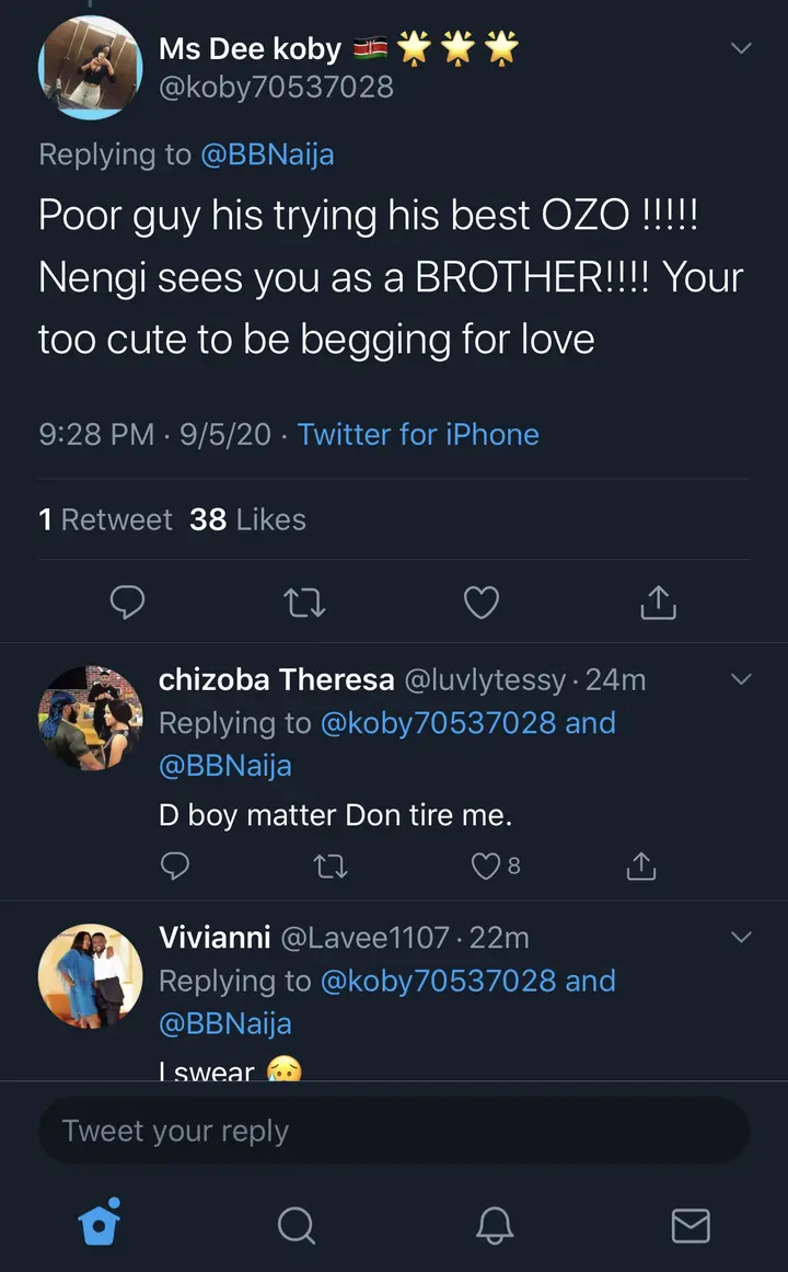 This sprung up various reactions over social media as some feel Nengi could be using Ozo to gain attention and more votes. While others think Ozo is over doing it.