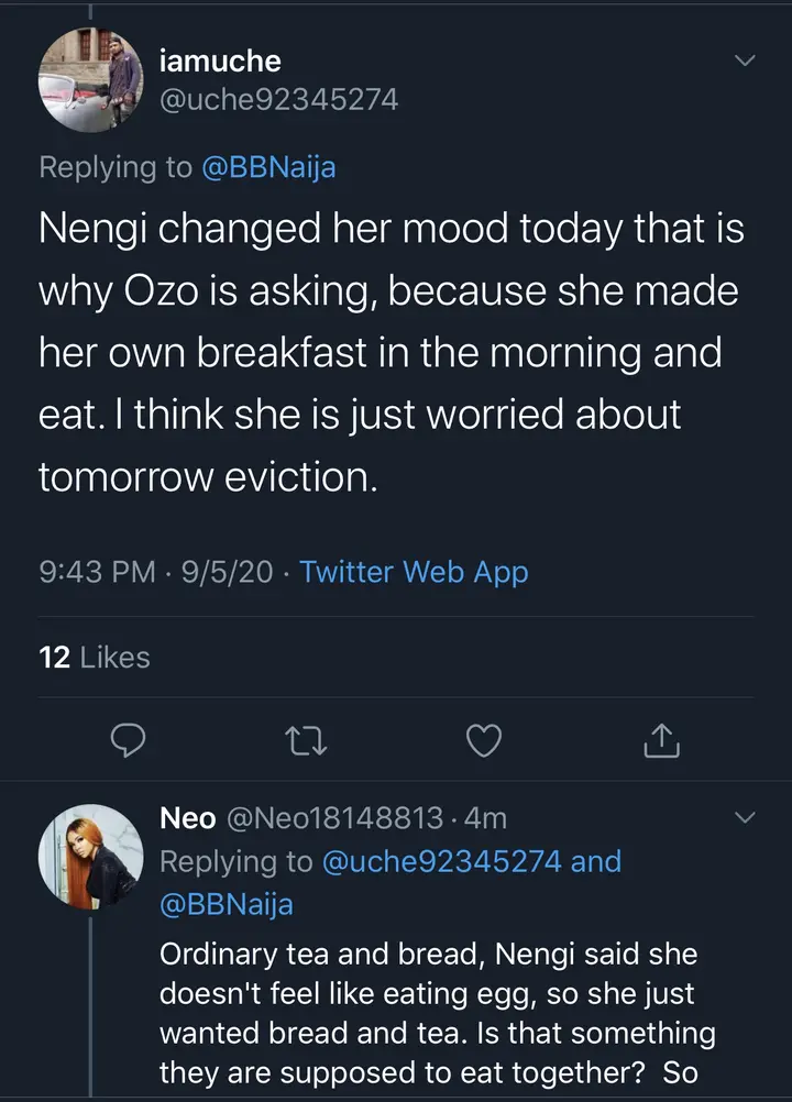 He complained about Nengi’s attitude towards him earlier today, he said they both got up with enough energy to keep the day with much optimism but in the end he felt Nengi switched up on him because she prepared her breakfast herself and she wasn’t committed to their morning devotion.