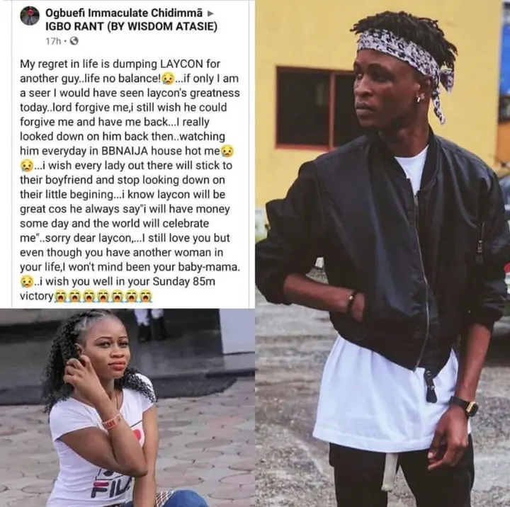 The lady who claimed to have left the upcoming artist said she doesn't mind if Laycon make her his baby mama and also wish Laycon well in the house.