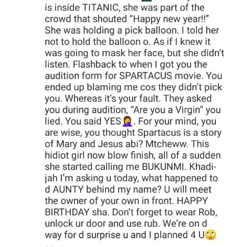 Kadijah replies Bukunmi after she trolled her for crying and rolling on the floor. Read what she say