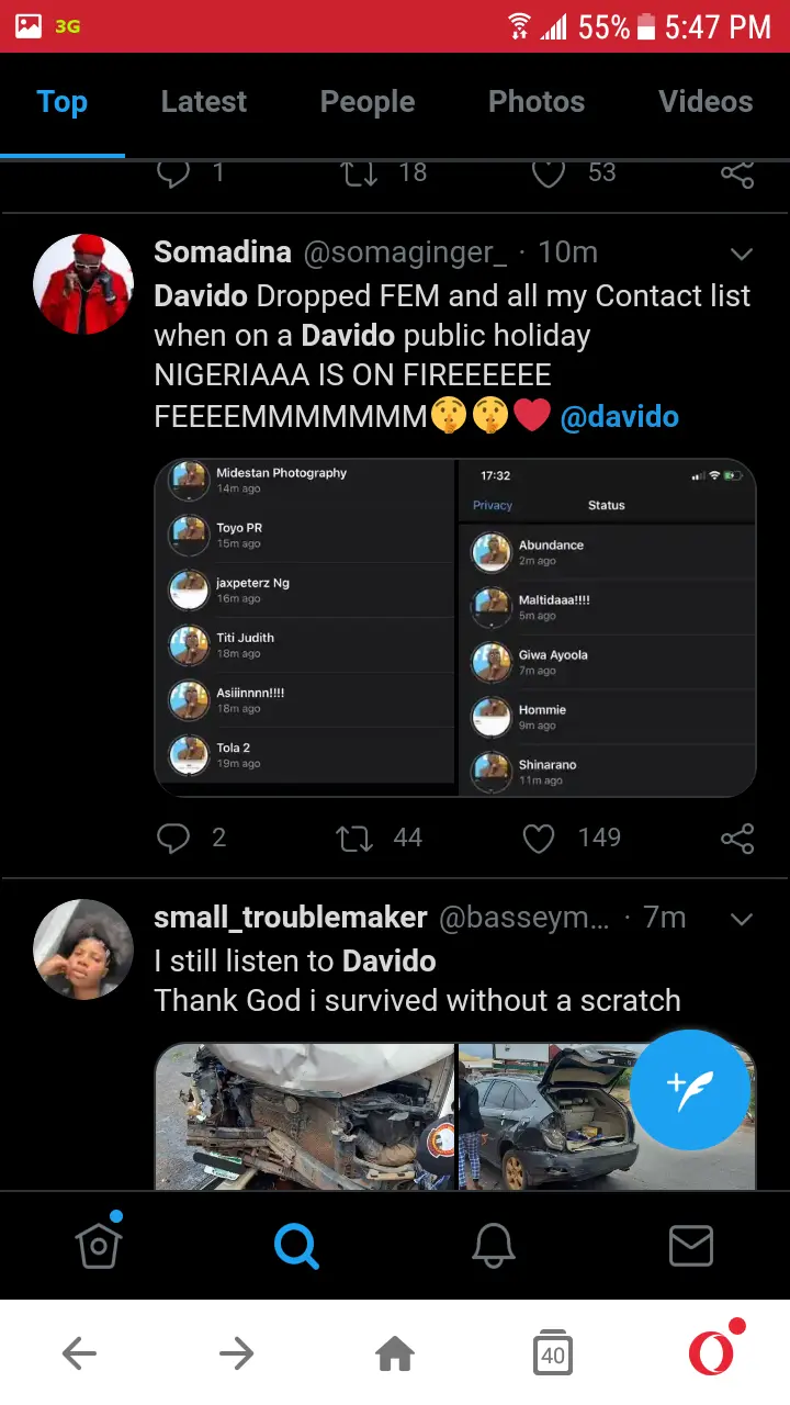 Reactions as Davido makes a sensational return to music with his new banger titled 'FEM'.
