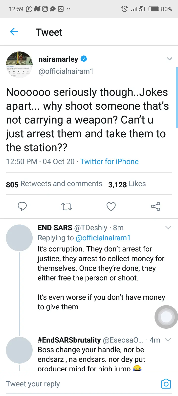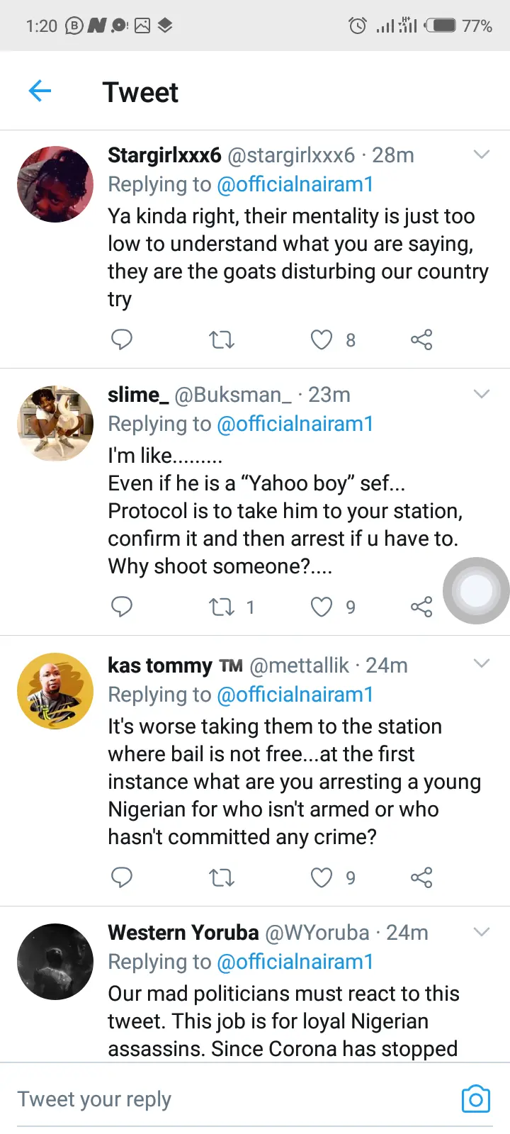 Then, few minutes after he wrote that, Naira Marley has again talked on the post as he seems so concerned and do he asked why should a guy without weapon be shot like that.