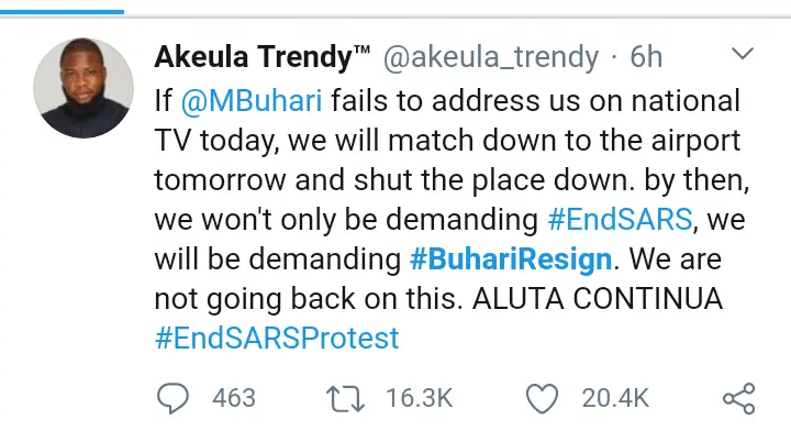 " If President Buhari did not address us on national TV today,we will maychdown to the airport and shut it down tomorrow"