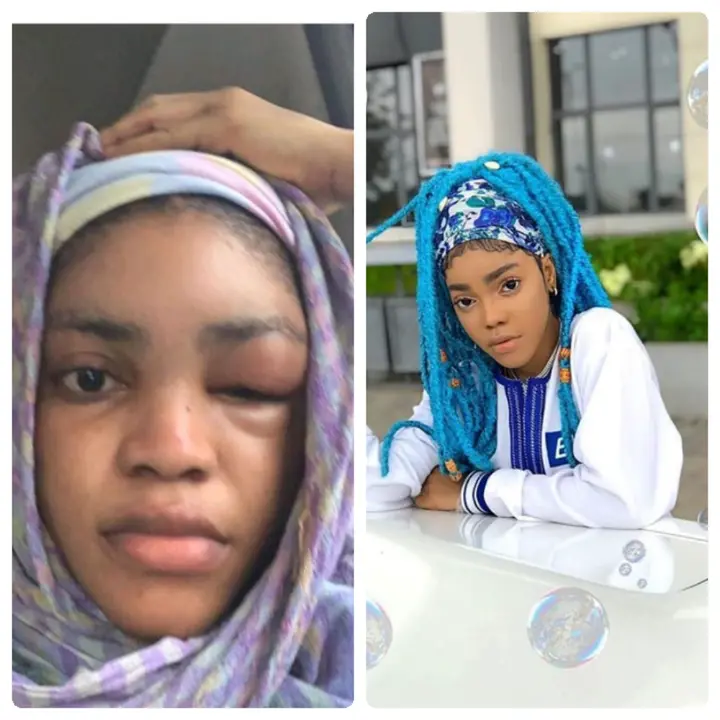 Lil Frosh's girlfriend is a very beautiful lady before Lil Frosh was allegedly accused of beating then this led to the deformation of her face.